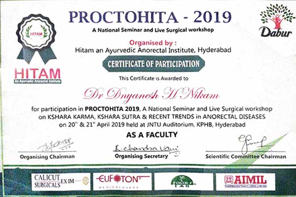 Delivered Lecture as a Faculty Member in Hitam an Ayurvedic Anorectal Institute, Hyderabad Conference on Arsha & Ayurvedic Treatment on 20th & 21st April 2019.