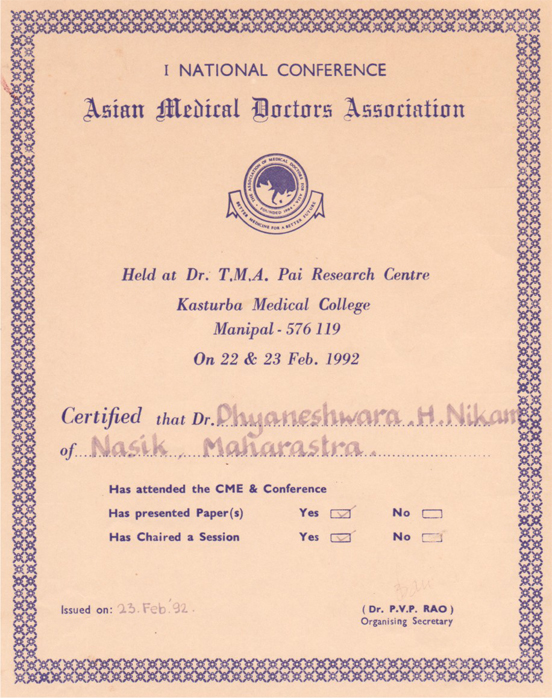 Presented Paper on Ayurveda at National Conference of Family Physician Association at Nasik in Dec 1992.