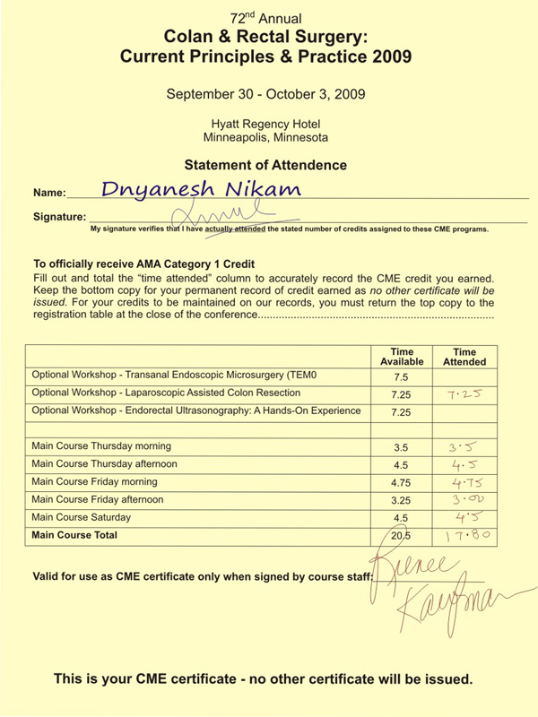 Attended Hands On Training In Proctolgy at Wuerzburg Germany March 2011.
